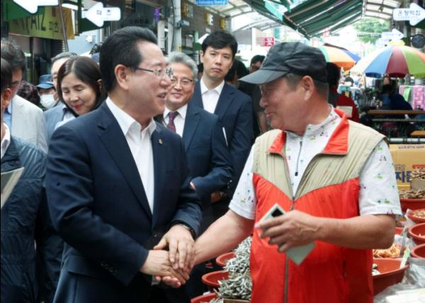 이어 간담회에서 “고물가에 따른 내수 부진으로 전통시장 이용객이 급감하고 소비가 침체돼 안타깝다”며 “상인들과 소통하면서 전통시장 등에 활력을 불어넣는데 총력을 기울이겠다”고 강조했다.