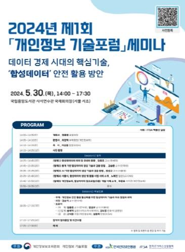 이에 개인정보보호위원회(위원장 고학수, 이하 ‘개인정보위’)와 한국인터넷진흥원(원장 이원태)은 5월 30일(목) “데이터 경제시대의 핵심기술, ‘합성데이터’ 안전 활용 방안”을 주제로 ’24년도 제1회'개인정보 기술포럼*'(이하 ‘기술포럼’) 세미나를 개최한다.