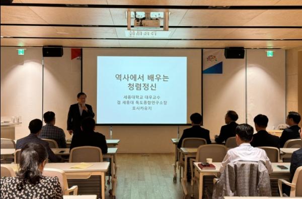 이어 독도 전문가로 대중에게 친숙한 호사카유지 세종대 교수가 ‘역사에서 배우는 청렴이야기’란 주제로 특강을 진행, 청렴의 진정한 의미를 깨우치고 청렴 가치관을 정립하는 시간을 가졌다.
