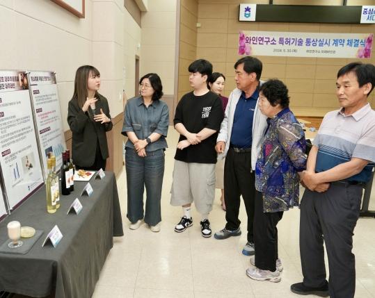 충북농업기술원은 30일 와인연구소에서 개발한 과실품질 측정 장치, 와인 생산용 효모 균주 등 6개 특허기술에 대하여 6개 업체에 총 7건의 통상실시 계약을 체결했다.