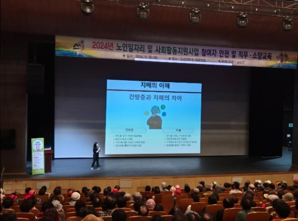 금산군은 5월 30일 금산다락원 대공연장에서 공익활동형 늘푸름나누미 사업 등 7개 사업단 참여 어르신 380여 명을 대상으로 안전 및 직무?소양 교육을 시행했다.