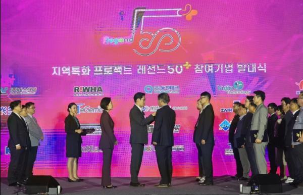 장호종 대전시 경제과학부시장은 30일 울산전시컨벤션센터에서 열린 레전드 50 발대식에 참석해 참여 대전기업에 직접 인증 배지를 수여했다.