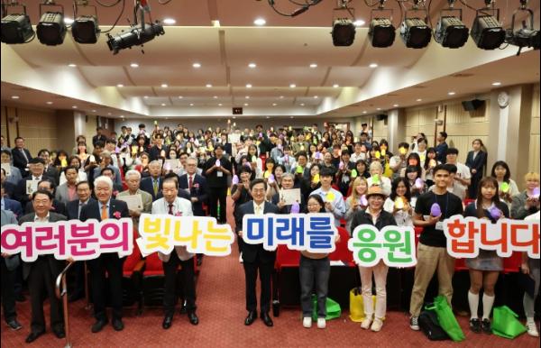 김동연 경기도지사가 31일 (재)경기도민회장학회의 주최로 열린 ‘2024년 경기도민 자녀 장학증서 교부식’에 참석해 장학생들을 격려하는 시간을 가졌다.