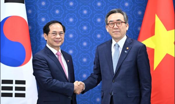 조태열 외교부 장관은 5월 30일부터 6월 1일까지 공식방한 중인 부이 타잉 썬(Bui Thanh Son) 베트남 외교장관과 5.31.(금) 오전 한-베트남 외교장관 대화를 개최하고, ?외교·안보 ?교역·투자 ?에너지·자원·공급망 ?기후변화·환경 ?개발협력 ?문화?인적교류 ?지역·국제문제 등 전방위에 걸친 협력 강화 방안을 논의했다.