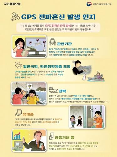 과기정통부는 GPS 전파혼신 위기경보 “주의” 단계를 유지하면서 국토부, 해수부 등 관계부처와 긴밀한 공조를 통해 실제 피해가 발생하지 않도록 항공기 지상항법시설?관성항법장비 사용, 선박 레이더?항로표지?지형지물 활용 등 예방조치를 수행하는 등 비상대비 체계를 운영하고 있다고 전했다.