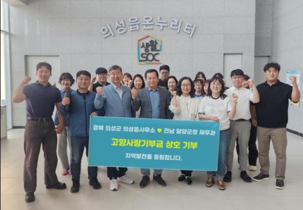 의성군 의성읍과 전남 담양군 재무과 직원들이 지자체 간 협력증진을 위해 고향사랑기부금을 상호 기부했다.