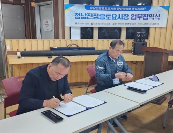 이번 업무협약은 문화관광형사업(2년차) 선진시장 벤치마킹 일정의 일환으로 올레시장과 제주 동문재래시장 등을 견학하면서 상인들의 견문을 넓히고 역량강화 도모를 위해 추진됐다.