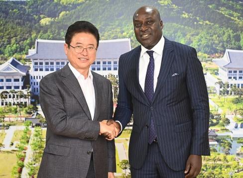 우간다 의회 외교위원회 부위원장 프레드 오폴롯 일행이 3일 경상북도-우간다 간 우호 교류 확대 논의를 위해 이철우 경북도지사를 예방했다.