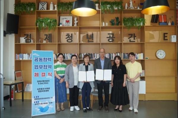 김제시는 지난 3일, 요촌동 도시재생현장지원센터와 김제청년공간 E :DA(이다)는 김제 지역 청년들의 창업지원과 요촌동 상권활성화를 위한 상호협력 관계를 구축하기로 하고 MOU를 체결했다고 밝혔다.