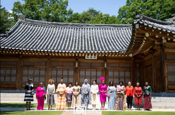 김건희 여사는 6월 4일 청와대에서 한-아프리카 정상회의 배우자 프로그램을 주최했다. 오늘 행사는 김 여사가 한-아프리카 정상회의 차 방한한 13개 국가의 정상급 배우자들을 초청해 한국의 전통문화를 알리고 교류를 이어가기 위해 마련됐다.