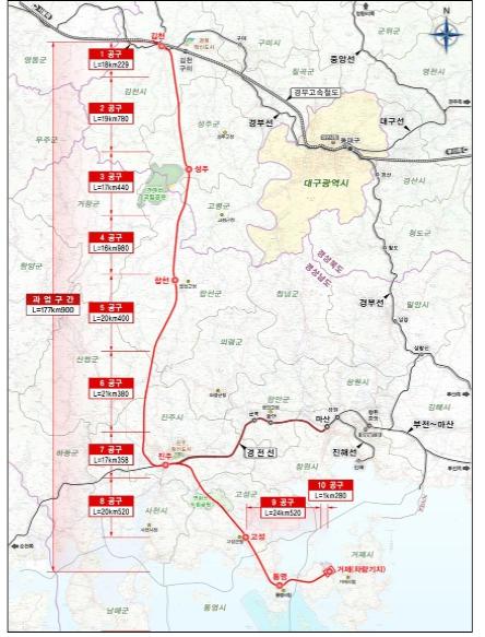 남부내륙철도 건설사업은 김천에서 거제까지 178km 구간에 철도를 신설하는 사업이다. 완공 시 서울역에서 거제까지 2시간 45분, 수서역에서 거제까지는 2시간 33분 만에 고속열차로 이동할 수 있어, 경남·북 내륙 및 남해안 지역의 관광 활성화 및 균형발전에 크게 기여할 것으로 기대된다.