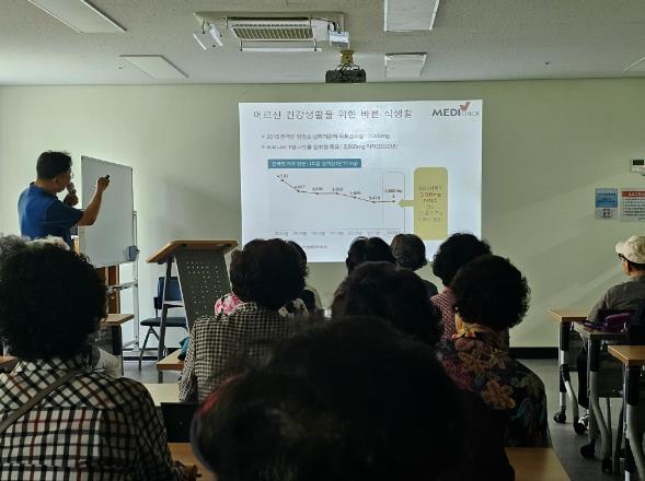 이번 강좌는 ‘중장년층의 올바른 식생활 방법’이라는 주제로 홍보교육과 김동민 과장이 직접 진행해주셨으며, 강의가 끝난 후에는 건강체험터를 통해 뇌파맥파 스트레스와 빈혈검사를 진행하는 등 참가한 분들에게 큰 호응을 얻었다.