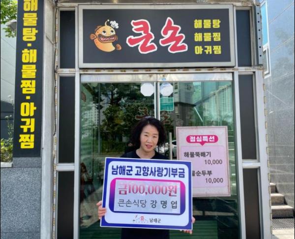세종시에서 큰손식당을 운영하고 있는 강명엽 향우는 고향사랑기부금 10만원을 전달하며 “비록 고향을 떠나 타지에서 생활하고 있지만, 마음만은 항상 남해군에 있다.