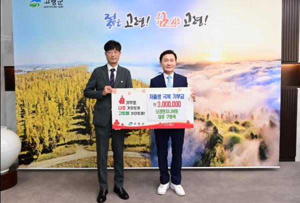 남경엔지니어링에서 6월 7일 고령군청을 방문하여 저출생 극복을 위한 성금 300만원을 기탁하였다.