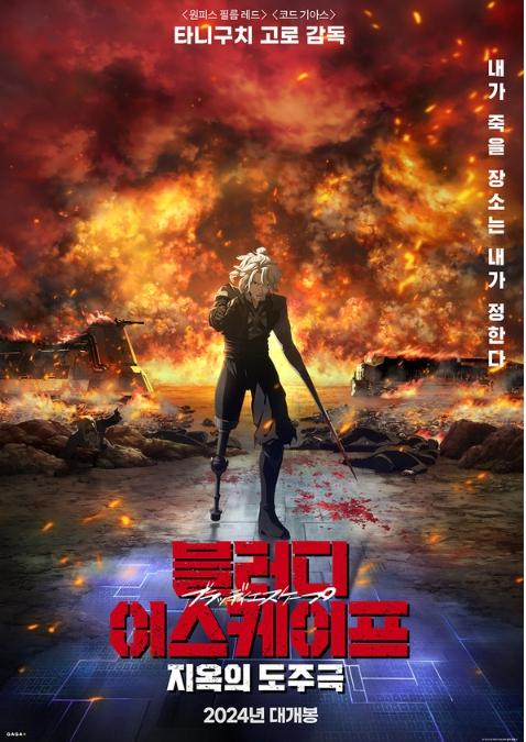'원피스 필름 레드''코드 기아스'를 연출한 타니구치 고로 감독의 신작 '블러디 이스케이프-지옥의 도주극'이 국내 개봉을 확정 짓고, 티저 포스터를 공개했다.[감독: 타니구치 고로 | 출연: 오노 유우키, 우에나 레이나 외 | 수입: ㈜도키엔터테인먼트 | 배급: 와이드릴리즈㈜]