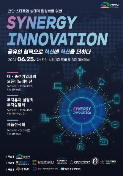 박상돈 천안시장은 “대·중견기업과의 기술협업을 간절히 원하는 지역의 스타트업이 많은 데 비해 소통할 기회가 적다”며 “이번 시너지 이노베이션을 통해 기업 간 활발한 소통과 상생·협력으로 서로 도움이 되길 바란다”고 말했다.