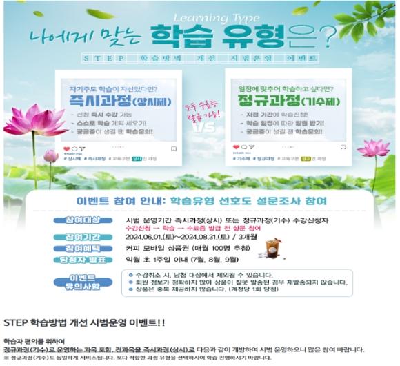 운영 강사를 활용한 학습 문의 답변 서비스와 더불어 학습 방법 변경 의견을 수용하기 위한 ‘학습유형 선호도 설문 이벤트’도 진행 중이다.