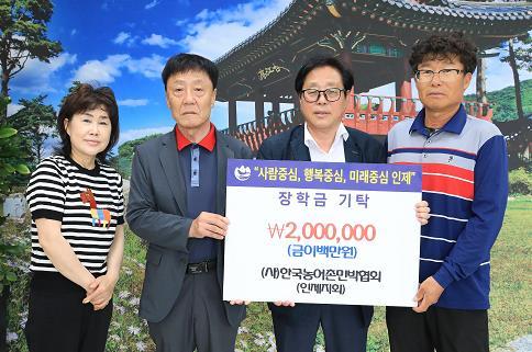 (사)한국농어촌민박협회 인제지회에서는 지난 6월 10일 인제군청을 방문해 지역인재양성을 위한 장학금 200만원을 기탁했다.