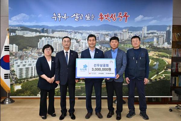 선우상공회가 6월 10일 오후 2시 30분 중구청 구청장실을 찾아 울산사회복지공동모금회를 통해 이웃돕기 후원금 300만 원을 전달했다.
