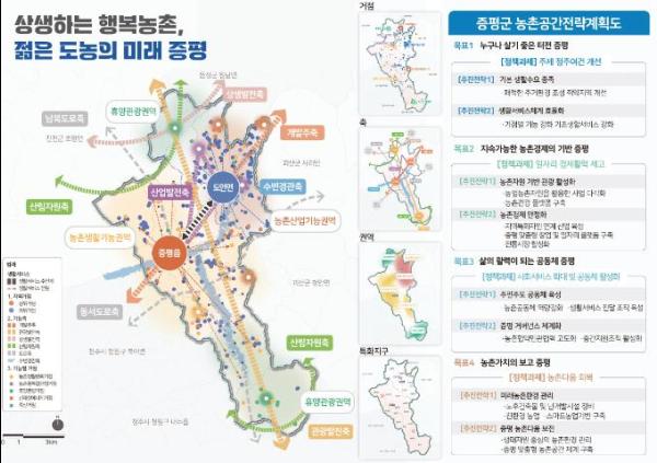 군은 ‘행복이 있는 삶터, 활력이 있는 일터, 즐거움이 있는 공동체, 아름다움이 살아있는 쉼터’를 사업 목표로 설정하고 새로운 미래 100년, 내일의 도시 증평을 실현한다는 방침이다.