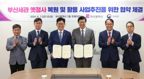 관세청은 부산시와 6월 7일 부산시청 대강당에서 '부산세관 옛 청사 복원 및 활용 사업 공동 추진을 위한 업무협약'을 체결했다고 밝혔다.
