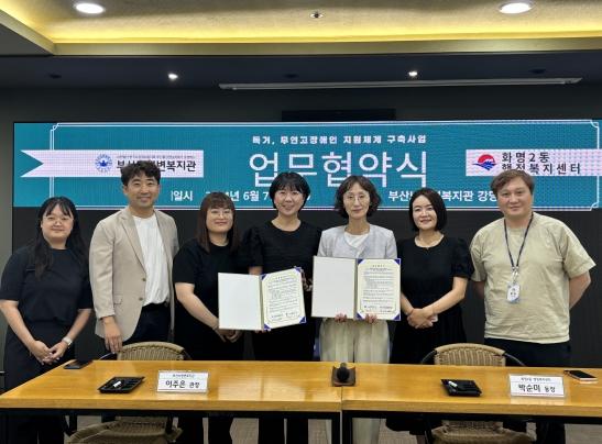 부산 북구 화명2동 행정복지센터는 지난 6월 7일 부산뇌병변복지관과 관내 독거·무연고 장애인 지원체계 구축을 위하여 업무협약을 체결했다고 밝혔다.
