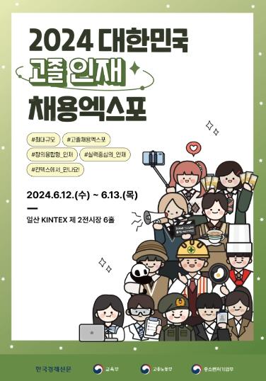 한국고용정보원은 12일부터 이틀간 일산 킨텍스(경기도 고양시)에서 개최되는 '대한민국 고졸인재 채용 엑스포'에 참가한다고 밝혔다.
