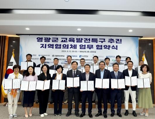 영광군은 지난 12일 지역교육 혁신과 인재 양성 및 정주여건을 개선하기 위해 교육발전특구 추진 지역협의체 업무 협약식을 가졌다.