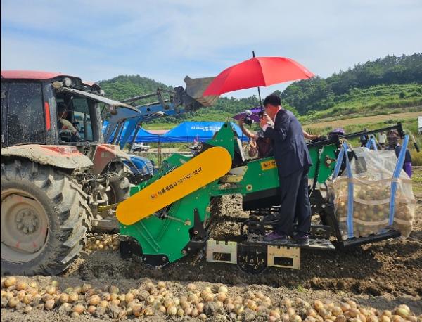 이번 연시 내용은 양파 줄기 절단 후 비닐을 제거하고, 수확기로 굴취하여 수집기로 톤백에 수집한 후 바로 저장 유통시설로 이송되는 것을 선보일 예정이다.