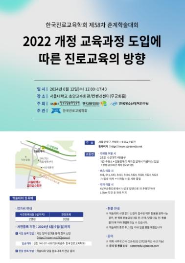 한국고용정보원은 6월 12일 서울대학교 호암교수회관 컨벤션센터에서 한국진로교육학회, 한국직업능력연구원, 한국청소년정책연구원과 공동으로 ‘제58차 춘계학술대회: 2022 개정 교육과정 도입에 따른 진로교육의 방향’을 개최한다고 밝혔다.