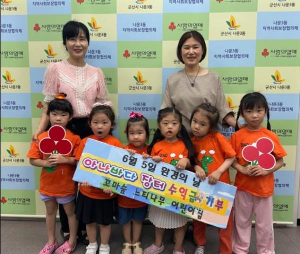 2일 군산시 미룡그린빌2단지 아파트 내에 있는 꼬마숲느티나무어린이집 원아들은 고사리손으로 모은 성금 23만 2천원 전액을 어려운 이웃에게 써달라며 나운3동 행정복지센터(동장 김소영)에 기탁했다.