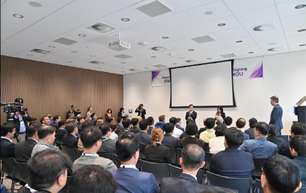 그린테크 박람회의 일환으로 진행된 충남 스마트농업 비전 발표 및 글로벌 협력 업무협약식은 김 지사, 네덜란드 농업자연식품품질부 프레드릭 보스나르 특사, 모니크 반 워드라게렌 와게닝겐대 비즈니스 유닛 디렉터, 스마트팜 관련 글로벌 기업 관계자 등 100여 명이 참석한 가운데 열렸다.