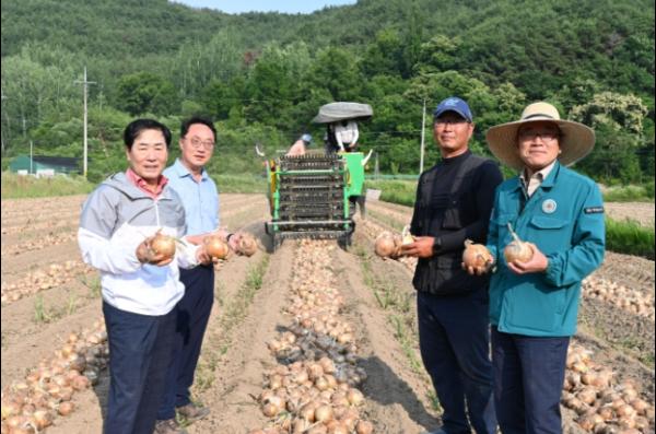 성 군수는 지난 11일에는 계성면 봉산리와 남지읍 대곡리, 12일에는 영산면 죽사리와 도천면 우강리의 양파 수확 현장을 찾아 올해 양파 작황과 애로 사항 등을 들었다.