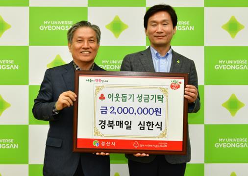 심한식 경북매일신문 기자가 13일 경산시청을 방문해 작년에 이어 이웃돕기 성금 200만원을 기탁하며 훈훈함을 안겼다.