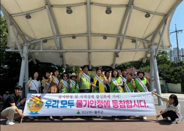 울산시 울주군이 13일 남창옹기종기시장에서 온양읍 그린리더협의회 박옥덕 회장 및 회원 15명이 참여한 가운데 전통시장 장보기 행사 및 물가안정 캠페인를 실시했다.
