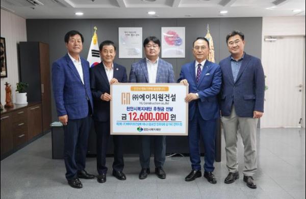 ㈜에이치원건설은 지난 13일 천안시장실에서 후원금 1,260만 원을 (재)천안시복지재단에 전달했다.