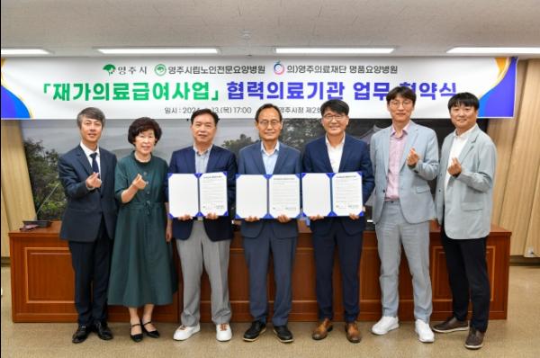 영주시는 지난 13일 시청 제2회의실에서 영주시립노인전문요양병원, 의료법인 영주의료재단 명품요양병원과 ‘재가의료급여사업’ 추진을 위한 협력의료기관 업무협약을 체결했다.
