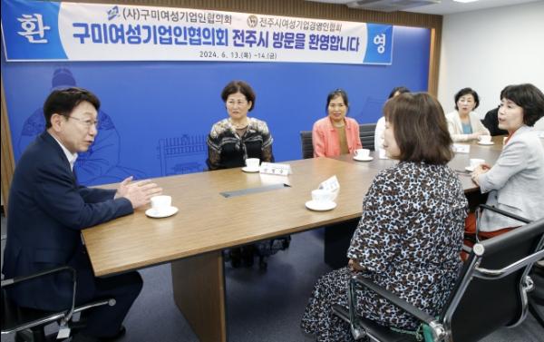 전주시는 14일 전주시청에서 구미여성기업인협의회와 우범기 전주시장이 간담회를 갖고 양 도시 간 경제산업 및 문화교류 분야의 협력 방안을 논의했다고 밝혔다.