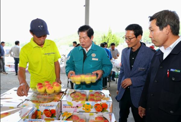 14일 공영민 군수는 고흥 노지산 햇복숭아의 본격적인 출하 시기에 맞춰 과역면 팔영농협 농산물 집하장을 방문해 복숭아 재배 농가를 격려하고 “고흥 명품 복숭아 확대 및 농가 소득 증대를 위해 지속적인 지원을 하겠다”고 약속했다.