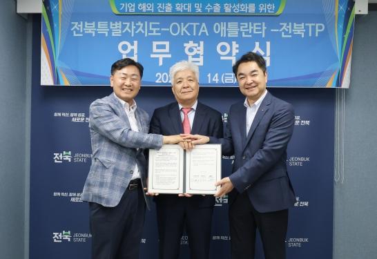 전북특별자치도는 OKTA 애틀란타지회, 전북테크노파크와 14일 전북특별자치도 서울본부에서 『전북자치도 기업 해외진출 확대 및 수출 활성화를 위한 업무협약』을 체결했다.