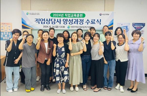 영천여성새로일하기센터는 지난 14일 영천시 평생학습관에서 교육생 18명이 참석한 가운데 2024년 상반기 직업교육훈련 마지막 과정인 ‘직업상담사 양성과정 수료식’을 개최했다.