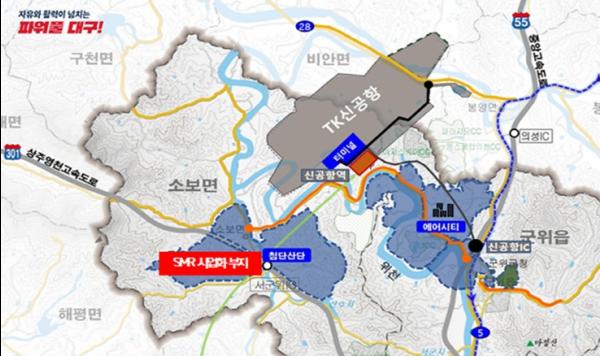그동안 대구광역시는 2년 전부터 군위군 신공항 첨단산단에 국내 최초의 SMR을 건설하기 위해 산업통상자원부, 한국원자력연구원, I-SMR 기술개발사업단 등과 논의해 왔다.