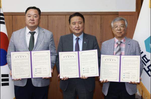 충북도는 17일 충북도청에서 한국생명공학연구원, 한국기초과학지원연구원과 함께 오창 정주여건 개선을 위한 주차장 조성과 상호협력 발전에 대해 업무협약을 체결했다.