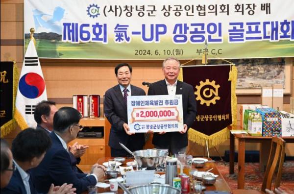 (사)창녕군상공인협의회는 지난 10일, 제6회 (사)창녕군상공인협의회 회장배 氣-UP 상공인 골프대회에서 창녕장애인체육회에 후원금 200만 원을 기탁했다.