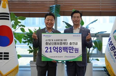 충남신용보증재단과 농협은행 충남본부는 18일 충남신보 본점에서 기부출연 전달식을 개최했다고 밝혔다.