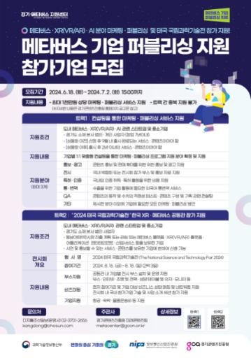 경기도와 경기콘텐츠진흥원이 메타버스 기업들이 보유한 기술이나 서비스가 시장에 출시될 수 있도록 지원하는 ‘메타버스 기업 퍼블리싱 지원’ 참여기업을 7월 2일까지 모집한다.