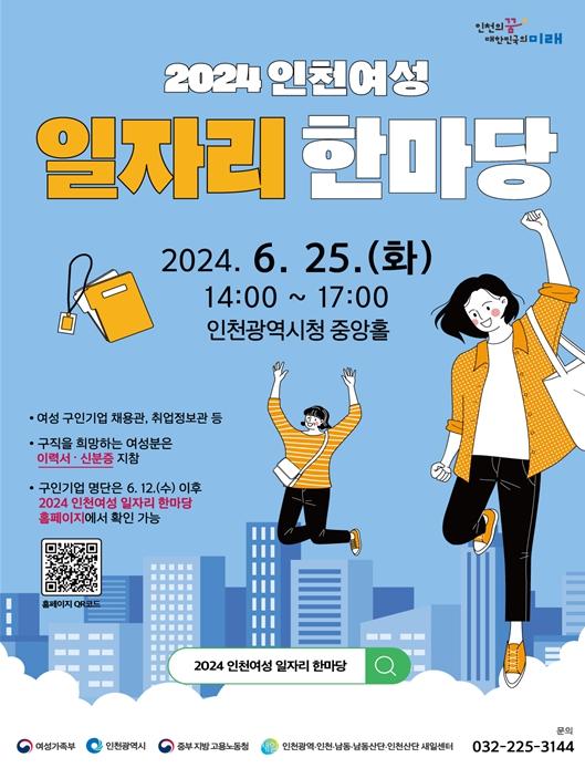 인천광역시는 오는 25일 오후 2시부터 5시까지 시청 중앙홀에서 여성 구직자들에게 취업 기회를 제공하는 ‘2024 인천여성 일자리 한마당’을 개최한다고 밝혔다.
