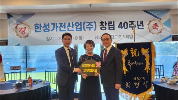 지난 16일 한성가전사업(주) 40주년 행사를 기념해 김한조 회장이 고향인 남원시에 고향사랑기부금을 기탁했다.