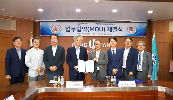 대구교통공사는 지난 18일 동양대학교에서 김기혁 사장, 동양대학교 최성해 총장 등 양 기관 대표들이 참석한 가운데 대학과 공기업 간 ‘산학협력 업무협약’을 체결했다.