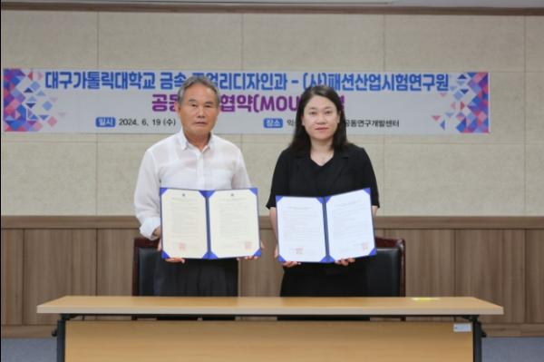 이번 업무협약을 통해 대구가톨릭대학교 금속·주얼리디자인과 대학생들은 익산에서 현장실습을 진행하고, 패션산업시험연구원은 학생들에게 시설 및 장비 활용 기회를 제공한다.